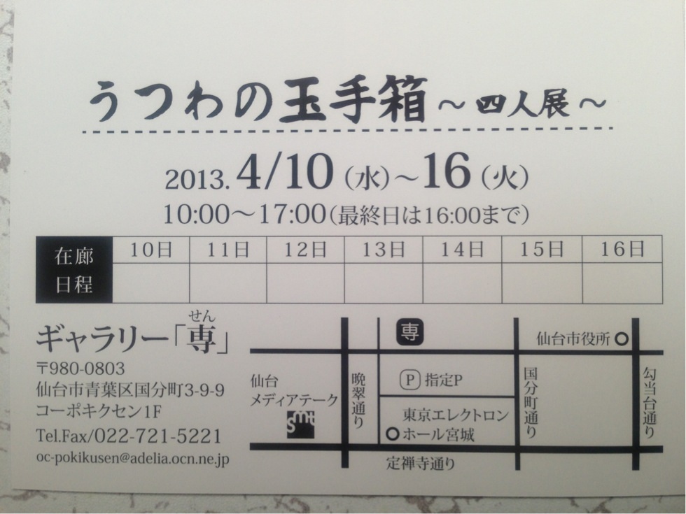 また、松島では 松かまさんのギャラリー(http://www.matsukama.jp/shop/shoplist/)におきましても 展示即売しております。