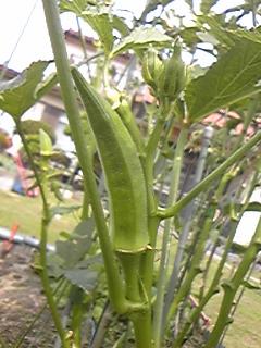 なんとも 大きなオクラが生っていて その実の付き方にも 結構驚きました。