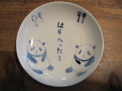 こちらは、もわもわ*びよりさんの染めつけたお皿です。かわいい!