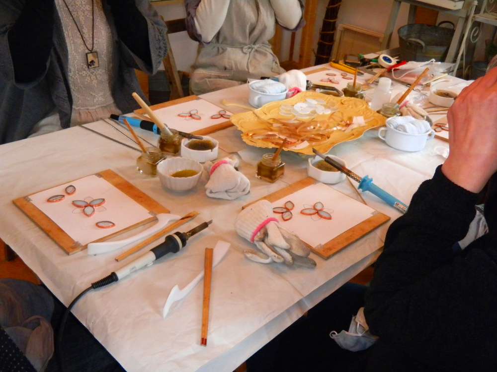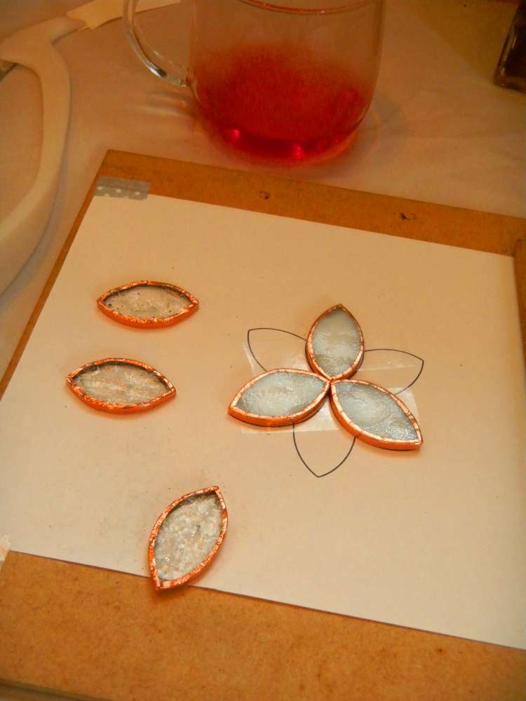 初めてのステンドグラス 各自 ガラスを選んで開始です のめり込みました~~