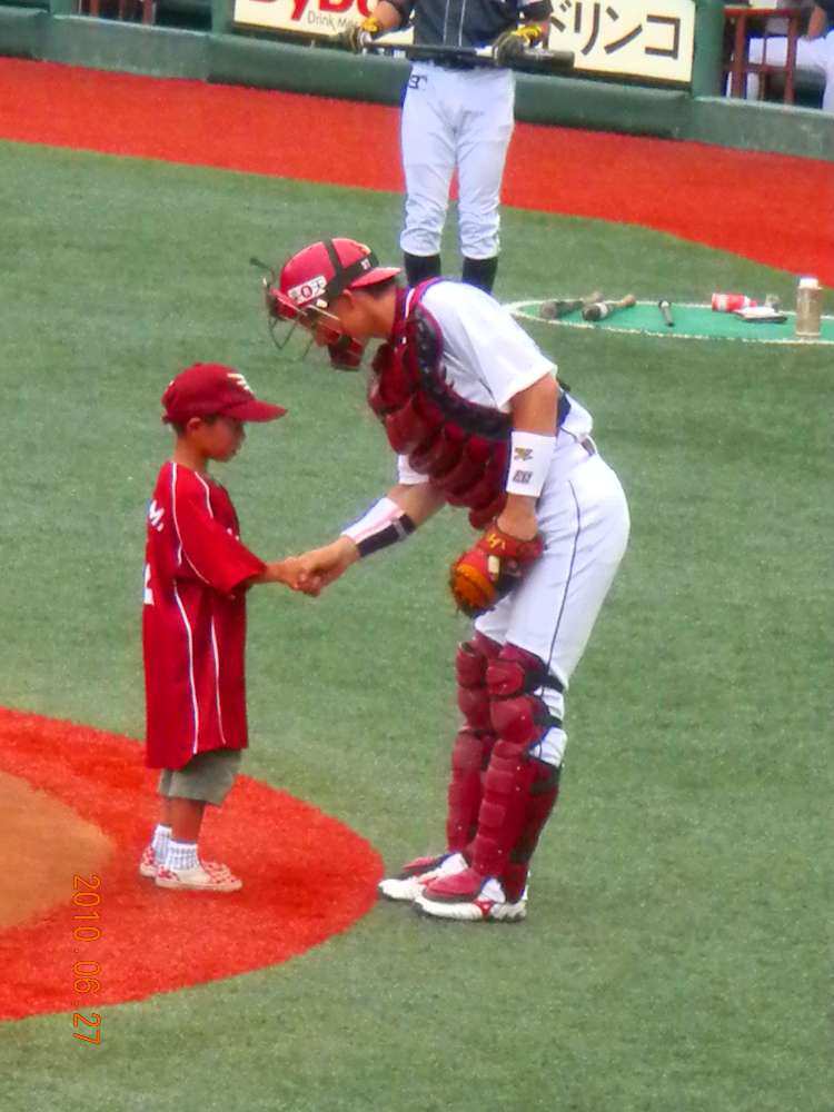 なんと 相手はキャッチャーです! 嶋さんというらしい・・・