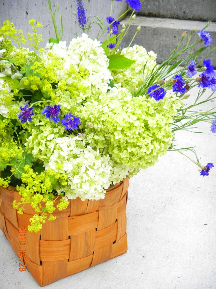 白樺かごに 素敵なお花がお出迎えです。