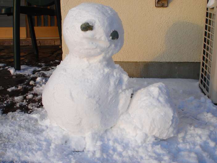 というわけで 雪だるまつくり 新雪すぎて大きくなりません なんとか重ねて出来上がり