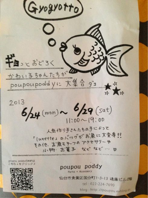 で、せっかくなので、いろいろな人気作家さんにお手伝いしてもらって、個性溢れるオンリーワンのお魚ちゃんたちを、poupou poddy店内に展示販売する事にしました。